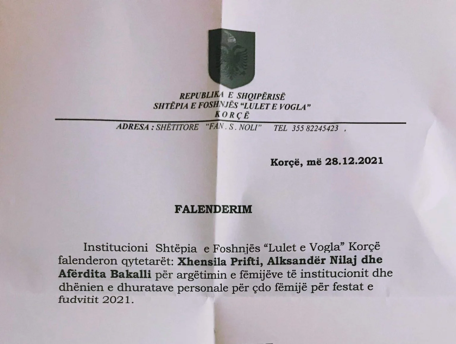 I thank the Korça Orphanage for the tireless work they do, as well as for the cooperation.